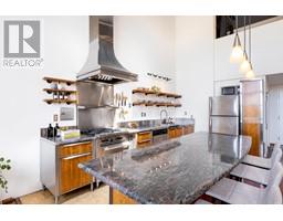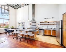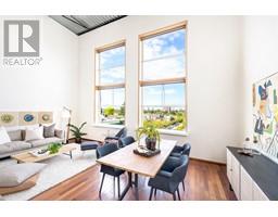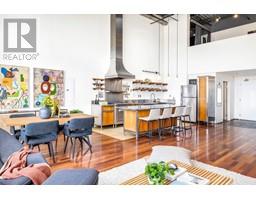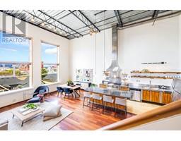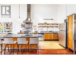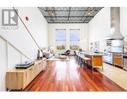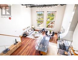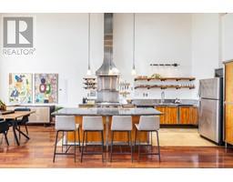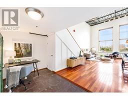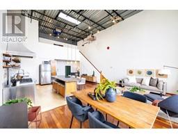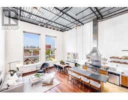 $320.07 MonthlyCoveted west-facing top flr 2-lvl LIVE-WORK loft at the "Workshop", a concrete building w/a decidedly New York feel on the edge of vibrant Strathcona. Soaring 18' ceil's offering stunning downtown & mountain views over a quiet residential street, with the perfect combination of open space, industrial style, sunset views & a true chef's kitchen (complete w/commercial grade 6-burner gas range, stainless steel cabinetry and stainless & granite counters, plus large movable island). Hunter Douglas top-down/bottom-up remote blinds, ceiling fans, powered skylight, A/C (newer heat pump) & dual heating system makes this loft comfortable year round both to live & work. In-suite laundry, 1 secure pkg & 1 pet ok! The Workshop is a well-cared-for built-to-last rainscreened bldg w/new roof & durable corrugated metal exterior. Come be a part of this unique & vibrant LIVE-WORK strata community. (id:23607)