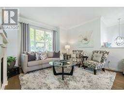 $556.91 MonthlyWelcome to this stunning, show home condition 4 bed/4 bath, half duplex style townhouse in Belmont Park. Rarely available! 12 unit complex, parklike setting, back lane access to side by side double garage. Completely renovated in 2017. White kitchen with lots of soft-close drawers/cabinets, under cabinet lighting, S/S appliances, Gas stove, white quartz countertops, large waterfall island. Easy access to the back deck perfect for entertaining & barbeques. Updated baths with quartz counter. New lighting, crystal chandeliers, crown molding. New flooring. Designer banded roller shades. Primary bedroom accommodates a king size bed, large walk-in closet with a full organizer system. En-suite with double vanities, soaker tub, loads of vanity cabinets. Upgraded insulated garage door with quiet open. (id:23607)