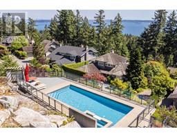 Quality-built classic house on 0.53 acre Private lot in one of Caulfeild's finest family cul-de-sacs with breathtaking Ocean & City VIEWS. Huge SOUTH facing frontage, main rooms all facing South with access to South patio, balconies and decks enjoying beautiful Sunrise & Sunset. Features include Air-Conditioning, Multiple Heating system. Water Purification system, 4 indoor + 1 outdoor Fireplaces, updated furnace & Hot Water Tank, huge Deck areas, fully tiled Pool & Hot Tub, 3-car Garage & Heated Driveway. Spacious updated kitchen with lots of cabinets. 4 Bedrooms up, oversized Master Bedroom with large 6 pieces bathroom and walk-in closet. Basement includes a guest Bedroom with Murphy bed, Entertainment area, Wine Room, Laundry Room and lots of Storage areas. This house is truly a VILLA hidden in the Paradise! Open House: Nov 5th, Sunday 1:30 to 3:30pm. https://youtu.be/CZPfUZZqEDE (id:23607)